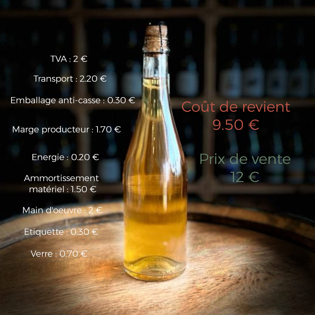The slightly higher cost of artisanal cider compared to industrial cider can be explained by the quality of the ingredients used and a more meticulous production process. Prices for a bottle of artisanal cider are typically around 9€.